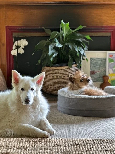 I believe that each person’s story is unique. My approach is client centred, warm, and collaborative, working alongside you at your pace to explore challenges, build understanding, and support meaningful change. We have two dogs and the little one is often in session with us.